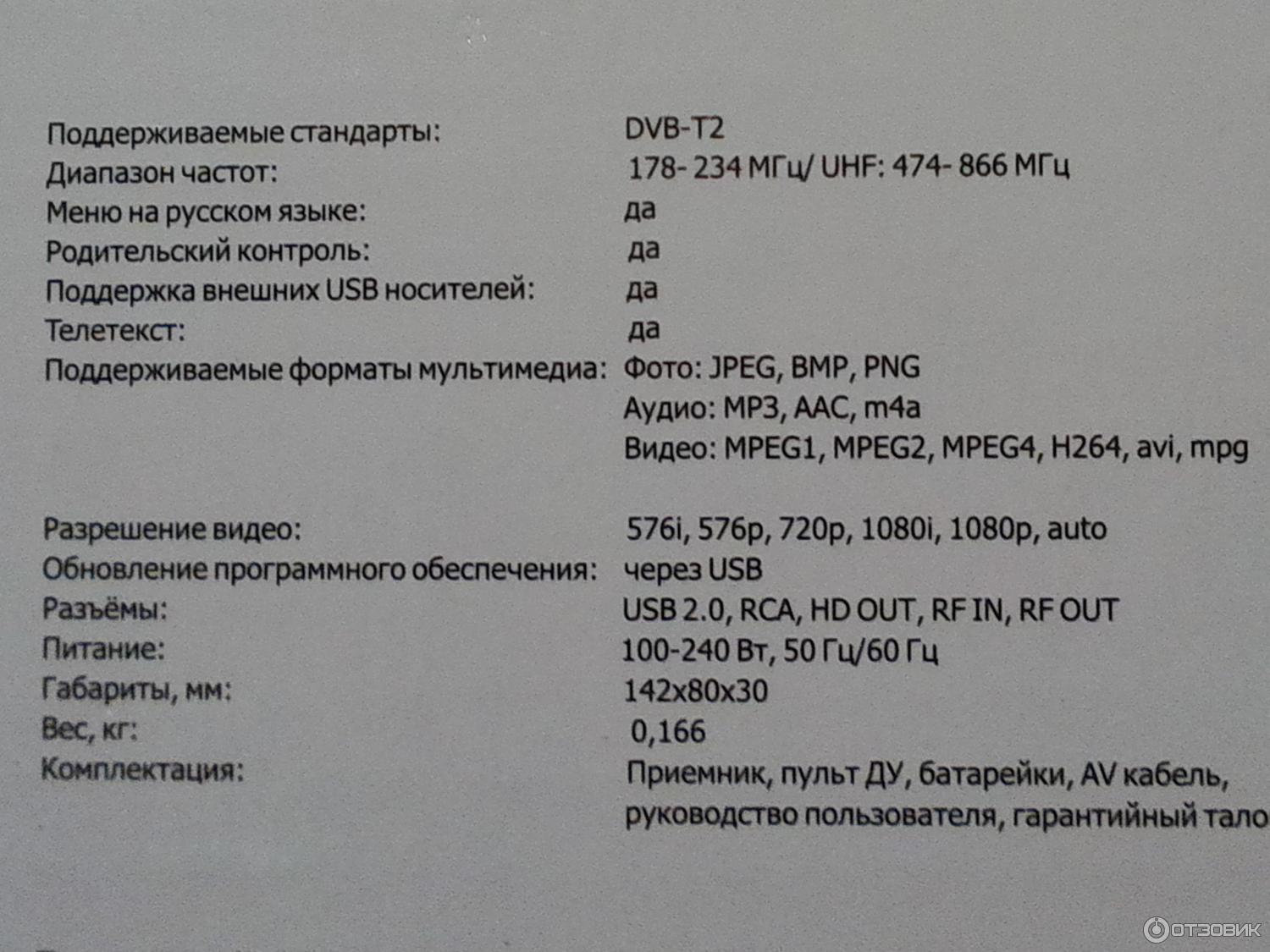 Публикую фото с некоторыми техническими характеристиками данной цифровой телевизионной приставки. Возможно, кому-то пригодится.