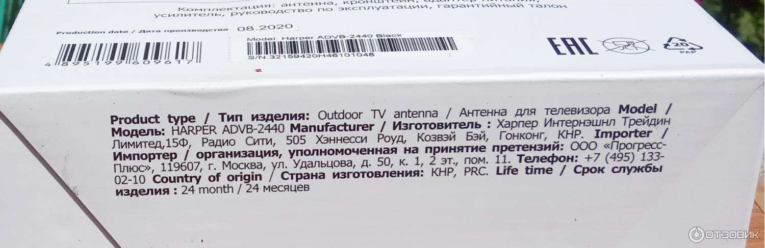 Речь об уличной антенне для цифрового телевидения HARPER ADVB-2440.